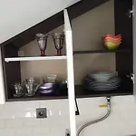 Une cuisine complète est présentée avec un réfrigérateur pour l'utilisation des clients. Des équipements de cuisine tels qu'une cafetière/théière sont fournis pour offrir aux clients une expérience pratique.